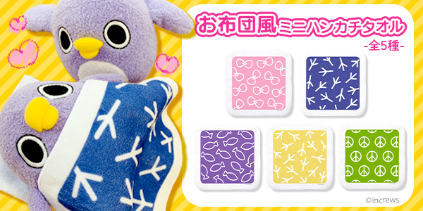 「カワセル」限定の「めんトリ」新商品はめんトリ用のお布団?!各キャラが愛用しているお布団模様のハンカチが登場!