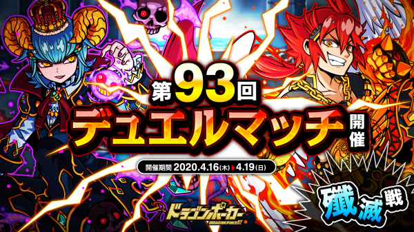 株式会社アソビズム(本社:東京都千代田区、代表取締役:大手智之)は、App Store・Google Playにて好評配信中のリアルタイム合体カードバトル『ドラゴンポーカー』で、2020年4月16日(木)より「第93回デュエルマッチ本戦」を開催いたします。