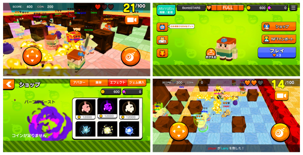 一定時間で爆発するボムをマップに設置して、最大100人のライバルと戦うバトルロイヤル対戦ゲームです!狭まっていくマップを戦略的に立ち回りながら生き残りをかけて戦います。キャラクターやボムの見た目、爆発エフェクトなどの多彩なカスタマイズができます! さらに、NFTインポート機能で、ブロックチェーンゲーム「くりぷ豚」などのNFT(非代替性トークン)を召喚して、操作キャラクターとして使えます!※インポートできるNFTは条件があります。