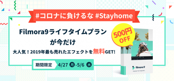 消費者向けソフトウェア開発・販売を展開する株式会社ワンダーシェアーソフトウェア(東京都千代田区、代表 吴太兵)は令和2年4月27日(月)より、#ステイホーム週間を楽しくする大人気エフェクトを含んだ234のエフェクトが無料でダウンロート、およびFilmora9ライフプランが500円OFFでご購入いただける特別キャンペーンを開始いたしました。