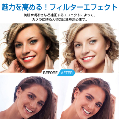 ・ 美肌や明るさなど補正によって魅力を人物の印象や魅力を高めるフィルターエフェクト機能。