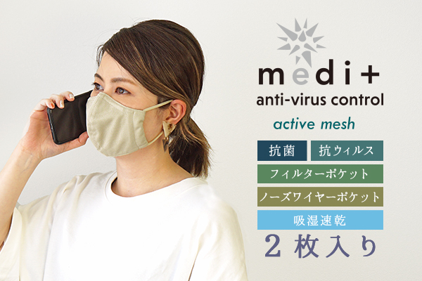 吸湿速乾素材を使用し、ノーズワイヤーポケットを付けた新作マスク!『IDOG&ICAT medi+洗える抗菌布製マスク アクティブメッシュサイドポケット付き 2枚入』5月15日より新発売!