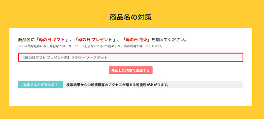 特徴(1) 商品説明などに対する具体的なSEOアドバイスを表示