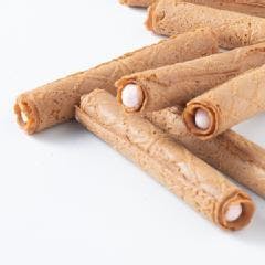 1粒をまるごと特殊なドライ製法で水分を抜いて乾燥させてパウダーにし口どけなめらかなクリームと混ぜ合わせ、サクサク食感に焼きあげたクッキーで巻き上げました。