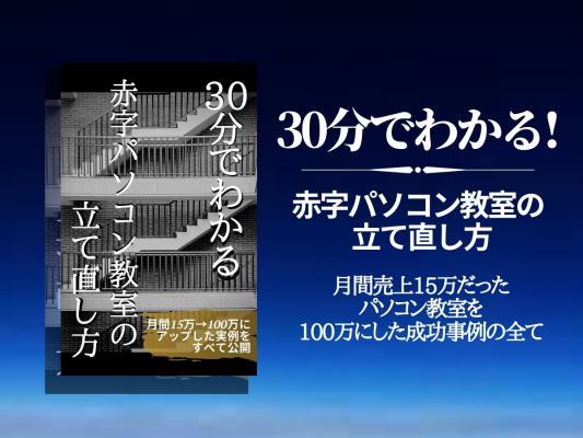 このレポートは赤字だったパソコン教室を黒字化したリアルな成功事例のすべてを書いています。