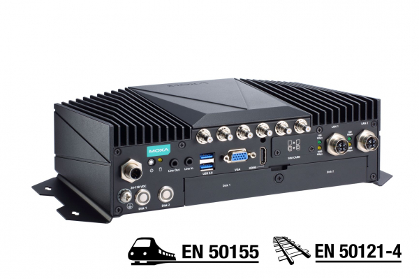 Moxaは、IRIS国際鉄道業界規格の認証を取得した鉄道通信ソリューションのプロバイダーであり、このたび発表した鉄道用コンピュータV2406Cシリーズは、鉄道の車載および沿線用アプリケーションに関するEN 50155:2017規格とEN 50121-4規格に準拠しています。過酷な環境でのデータ処理タスク向けに設計されたV2406Cシリーズのコンピュータは、Intel(R) CoreTM i7/i5/i3またはIntel(R) Celeron(R) 高性能プロセッサを中心に構築されており、最大32GBのRAM、mSATAスロット1つ、ホットスワップ対応HDD/SSDストレージ拡張用スロット2つを搭載しています。また、車両・地上間(T2G)のアプリケーションで信頼できる接続を実現するため、mPCIe無線拡張用スロット2つとSIMカード・スロット4つを装備しています。これらのスロットによりLTE/Wi-Fiの冗長接続を確立することで、高速で走行する列車と地上間の双方向の通信をしっかりと確保できます。その上、無線モジュール用に標準装備されたQMAケーブルによって、組み立ての手間をなくし、RF漏洩を抑えることもできます。