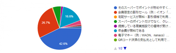 約7割が「そのスーパーでポイントが貯めやすくなる」「会員限定の割引セール(例:イオン「お客さま感謝デー」)に参加できる」などの「そのスーパーでの利便性」を挙げる