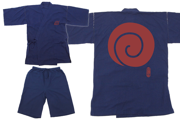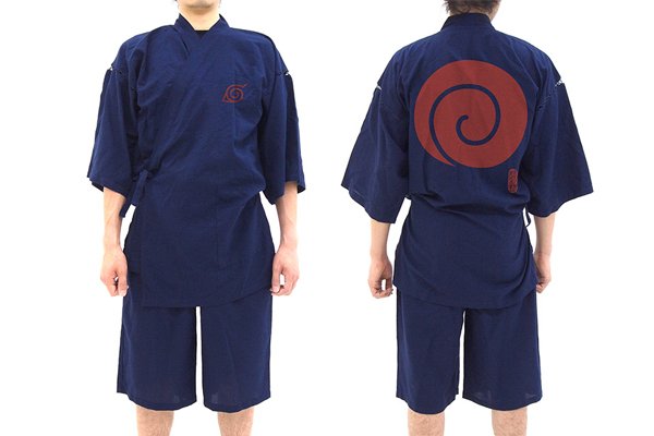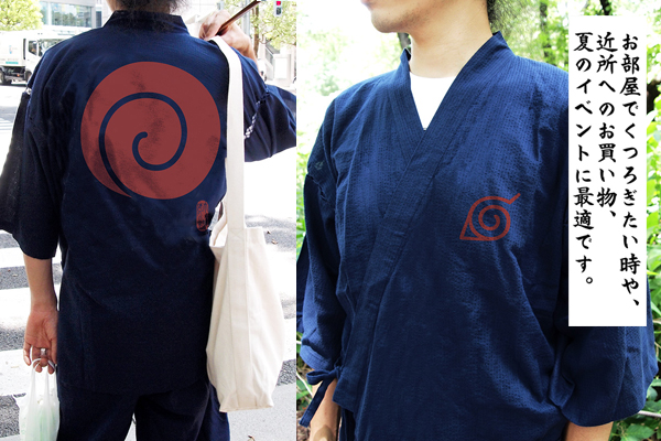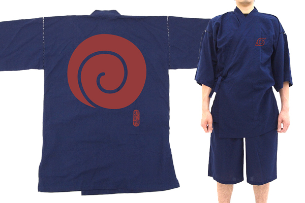 背中には大きくナルトとお揃いの渦巻き模様を、左胸には木ノ葉マークをワンポイントでデザインした、木ノ葉隠れの里の忍者気分も楽しめる甚平が登場です。