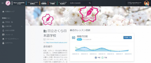 「Japany Language」には、オンライン学習機能だけではなく、学習管理機能もあり、管理者が学習の進捗状況を管理することが可能です。また、学習者とのコミュニケーションツール(メッセージ機能、お知らせ機能)としても活用することができ、日立さくら日本語学校様は、入国前の留学生のモチベーション管理も行っています。