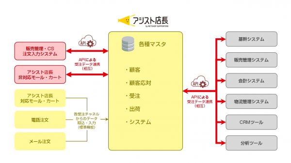 ※「アシスト店長」のAPI利用料金は無料ですが、データ連携に際し当方での有償カスタマイズ・個別開発が発生する場合があります。