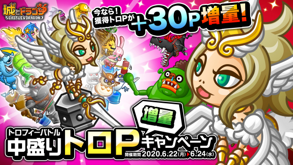 株式会社アソビズム(本社:東京都千代田区、代表取締役:大手智之)は、App Store・Google Playにて好評配信中の『城とドラゴン』で、「トロフィーバトル 中盛りトロP増量キャンペーン」を2020年6月22日(月)より開催いたします。
