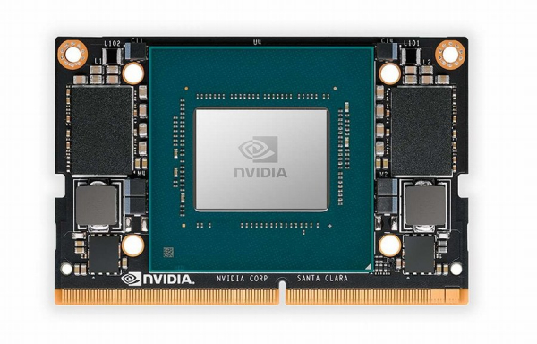Jetson Xavier NXボードは、CPUは、NVIDIAの6コア64ビットArm CPU「Carmel」、「CUDA」コア384基と「Tensor」コア48基、NVIDIAのディープラーニングアクセラレーター2基を搭載した「Volta」アーキテクチャのGPU AIアクセラレータを搭載します。Jetson Xavier NXは、ロボット工学などの組み込みアプリケーション向けの「Jetson AGX Xavier」(最大32TOPS)と、0.5TFLOPS(FP16)の性能を提供するJetson Nanoを組み合わせています。Jetson Xavier NXは、同ファミリーの既存製品である「Jetson TX2」よりも小型で、Jetson TX2と同等の消費電力で大幅に高い性能(最大15倍)を実現しています。