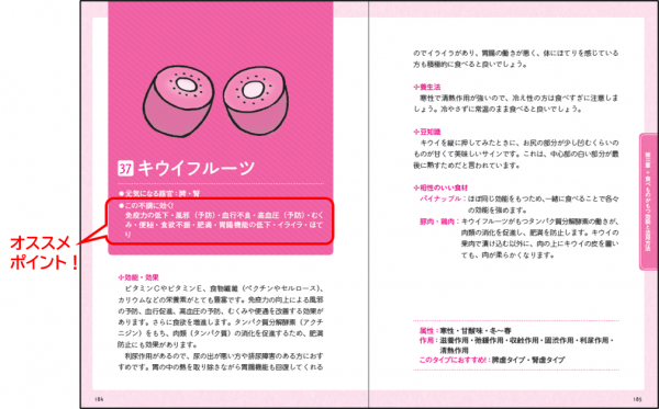 また今の体質を判断するチェックリストや不調が起こるメカニズム、相性のいい食材、食材に関する豆知識、レシピ、養生法もご紹介しています。