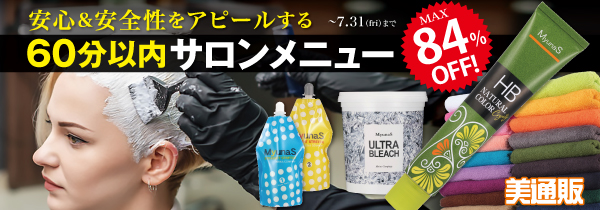 プロ向け美容材料の通信販売サイト「美通販」が、安心&安全性をアピールする「60分以内サロンメニュー」アイテムキャンペーンを開催中。