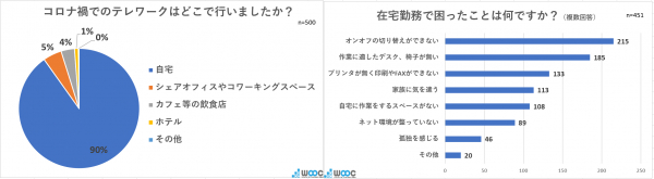 レンタルオフィスとコワーキングスペース事業を行う株式会社WOOC(よみ:ウォーク、所在地:東京都品川区、代表取締役:阪谷 泰之)は、新型コロナウイルス禍のテレワークに関する調査を実施しました。2020年6月16日 (火)〜 2020年06月17日(水)の間に得た、20〜50代のテレワークを行った男女500名の有効回答を集計し、その結果を2020年6月29日(月)に発表します。