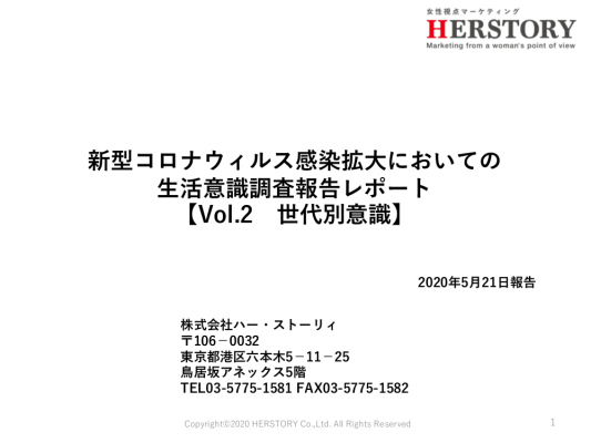 女性視点マーケティング(R)を行っている株式会社ハー・ストーリィ(代表取締役:日野佳恵子、本社:東京都港区)は、新型コロナウイルス感染症(COVID-19)が生活者にどのような影響を及ぼしているのかをハー・ストーリィ会員の皆様にご協力いただき調査を実施しました。新型コロナウィルス感染拡大においての生活意識調査報告データを無料公開しています。