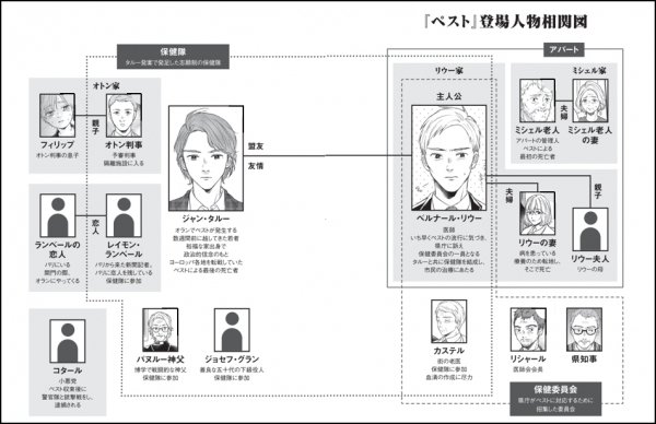 『ペスト』のストーリーをより効率的に追えるように、マンガ、登場人物たちの相関図を掲載しています。