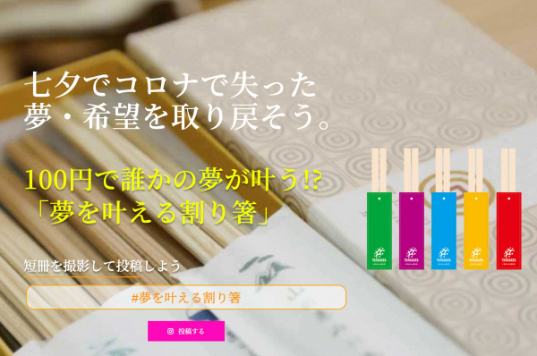 七夕で、コロナで失った夢・希望を取り戻そう! 100円で誰かの夢が叶う?みんなの夢や願いを短冊に書いてアップしよう! 「夢を叶える割り箸」が登場