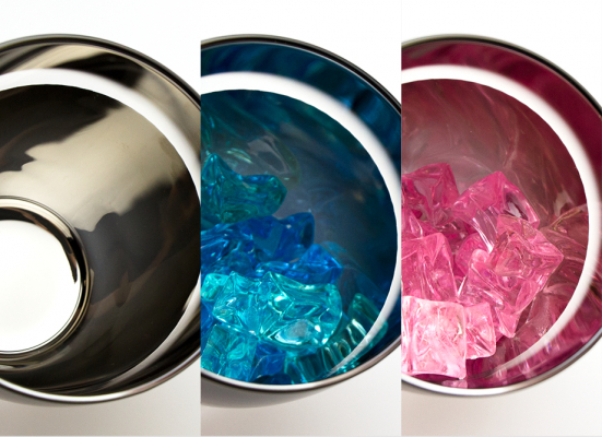 注がれるお酒の色によりグラス内面の彩りが変化します。