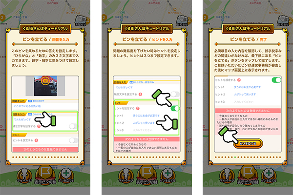 2.ピンをクリックし、ヒントを参考にクイズに回答。
