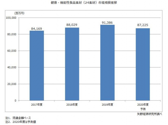 株式会社矢野経済研究所(代表取締役社長:水越孝)は、国内の健康・機能性食品素材(原料)市場を調査し、各素材別の動向、参入企業動向、将来展望を明らかにいたしました。