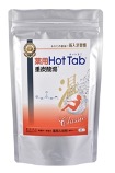 日本には中性重炭酸泉が少ないことから、「ご家庭でも同じ効果を」と当社が研究開発したのが、「重曹」と「クエン酸」を錠剤化した独自製法の入浴剤『ホットタブ』シリーズです。マイクロカプセル化という特許技術により、お湯の中に高濃度の中性重炭酸泉イオンを融解させることに成功しました。