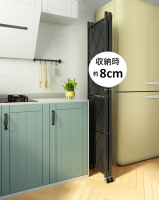 組み立て作業不要!すぐ棚を設置できて、使わない時に隙間収納もできる便利な「折りたたみ式キャスター付きラック」2モデル発売 - miraion