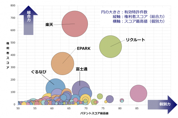【ネット予約システム関連技術】特許総合力ランキングトップ3は楽天、リクルート、EPARK