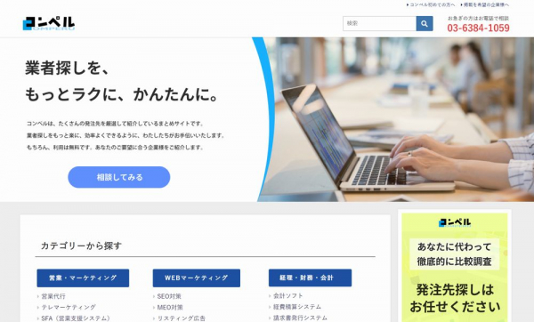 カテゴリー数日本最大級の製品サービス一括見積もり比較サイト「コンペル」がオープン!