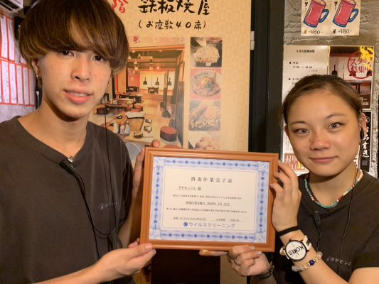 消毒終了後は、ステッカーと完了証を発行しております。従業員やお客様が安心して過ごせる空間であることの証明として、事業再開等に役立てて頂くこともできます。