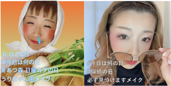 数ある投稿の中でも多くの方に好評だったあつまれどうぶつの森の人気キャラクターをイメージしたメイクそして探偵の日からイメージした女性探偵イメージのメイク。毎日いろんな日が数多くある中から、ミワンダフルがこれをメイクで表現したら面白そうだなと思うものをセレクトし、約2時間から3時間かけて自身にメイクを施し撮影する。ナチュラルなメイクやアートメイクなどが交互に登場するように工夫している。