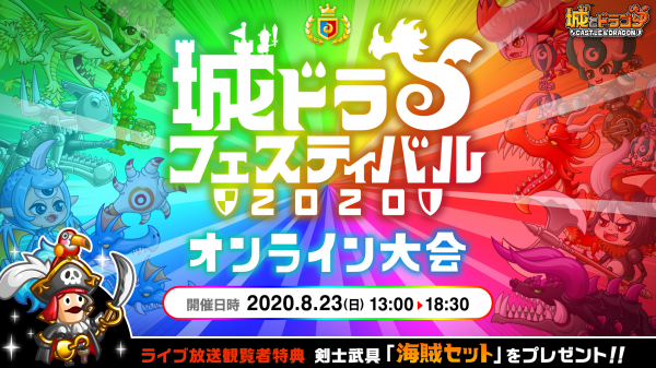 株式会社アソビズム(本社:東京都千代田区、代表取締役:大手智之)は、App Store・Google Playにて好評配信中の『城とドラゴン』オンラインイベント「城ドラフェスティバル2020オンライン大会」を2020年8月23日(日)より開催いたします。