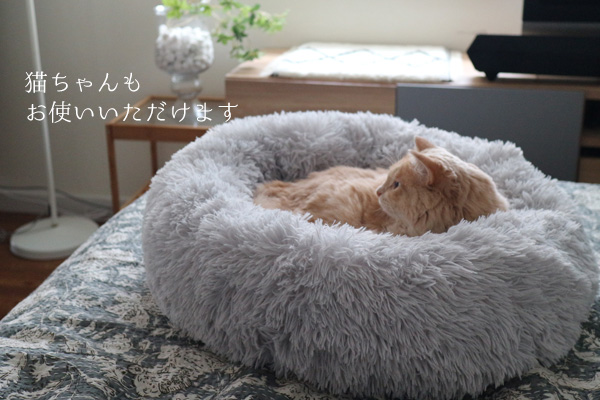 ラウンド型のベッドは底面のクッションは取り外し可能。汚れたらすぐに洗うことができます。