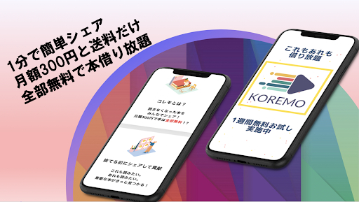 Koremo(コレモ)は、「これも読みたい、あれも読みたい」という要望に応える本の新しいシェアリングプラットフォームです。