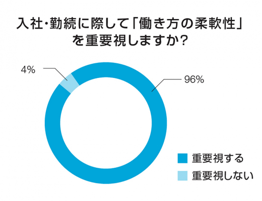 会社員の96%、アフターコロナの勤続・入社に際して「働き方の柔軟性」を重視