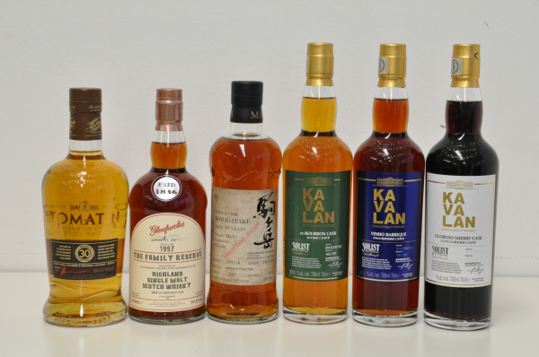 最高金賞を受賞したスコッチとジャパニーズ、そして台湾(カバラン)のシングルモルト6本を比較テイスティング。