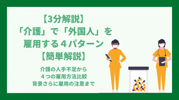 【3分解説】「介護」で「外国人」を雇用する4パターンまとめを無料公開しました!介護の人手不足の現状から、4つの雇用方法の比較、背景、雇用の注意点まで徹底解説します。