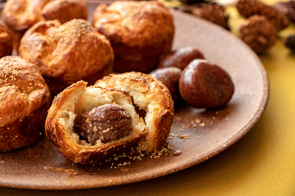 大きな和栗を丸ごと一つ、発酵バターを使用したプレミアムなクロワッサン生地で包みました。しっとりクリーミーな栗とサクサクなクリスピー食感の調和が魅惑的で、一つ食べたらあともう一つと、ついつい手が伸びてしまいます。