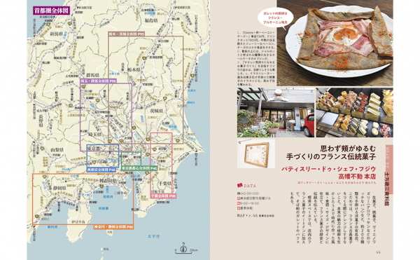 地図は掲載スポット同士の距離感がわかる広域図もアリ。「ここに行ったら次はここ……」と計画が立てやすい!