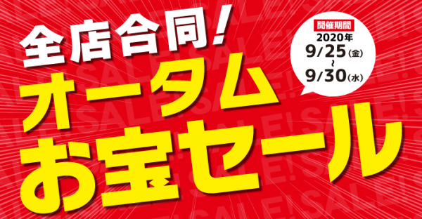 2020年9月25日(金)〜9月30日(水)の6日間限定で、らしんばん各店舗のお宝アイテムがお得に買える全店合同セールです。