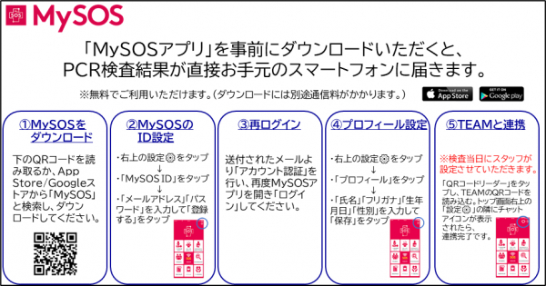 【結果判明時間】 2時間程度 (結果はスマホアプリ「MySOS」でお知らせ/証明書添付可)