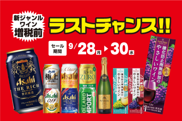 10月1日より新ジャンル、ワインが増税となります。まとめ買いはリカーマウンテンで!