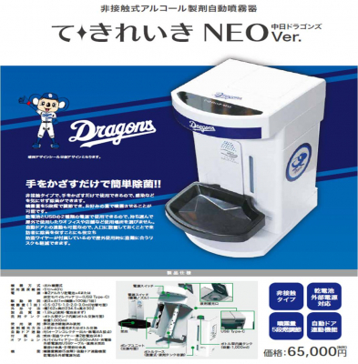 中日ドラゴンズとコラボレーションした非接触式アルコール製自動噴霧器「て・きれいきNEO」を9月28日発売を開始