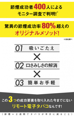 「吸いごたえ×口寂しさの解消×簡単・お手軽」の3つの要素が節煙成功を大きく左右します。