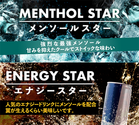 大人気のエナジードリンク風味にメンソールを配合。ガツンと来る吸いごたえはそのままにさっぱりとした甘さがクセになる独自のフレーバーに仕上がりました!