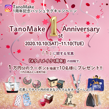「TanoMake1周年記念ハッシュタグキャンペーン」2020年10月10日(土)〜11月10日(火)