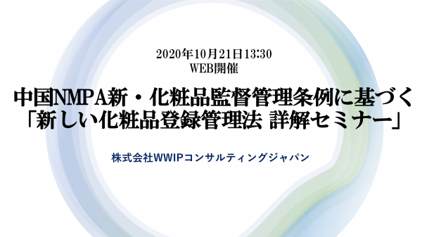 [セミナー開催]中国NMPA新・化粧品監督管理条例に基づく新しい化粧品登録管理法 詳解セミナー10月21日13:30開催(WWIP)