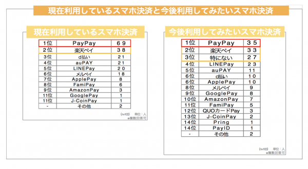 やはり、利用店舗の多い「PayPay」が支持を集めていることがわかります。