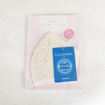 【洗えるエレガントマスク】は、表生地にウォッシャブルレースを使用しており、繰り返し洗える素材となっております。