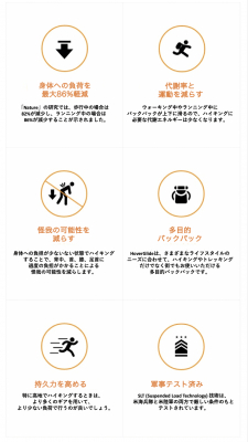 ・タイトル:“浮く”特許技術を用いたフローティングバックパック。体への負荷を最大86%軽減!